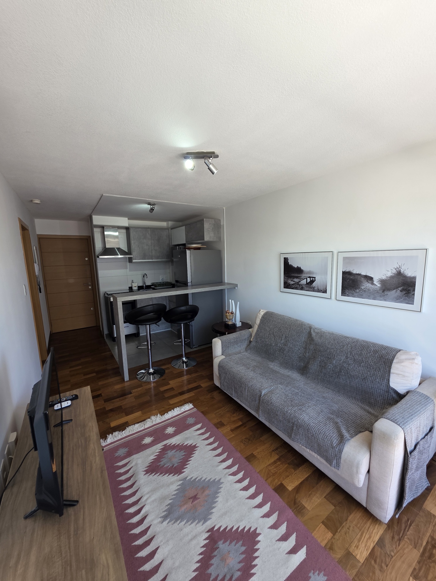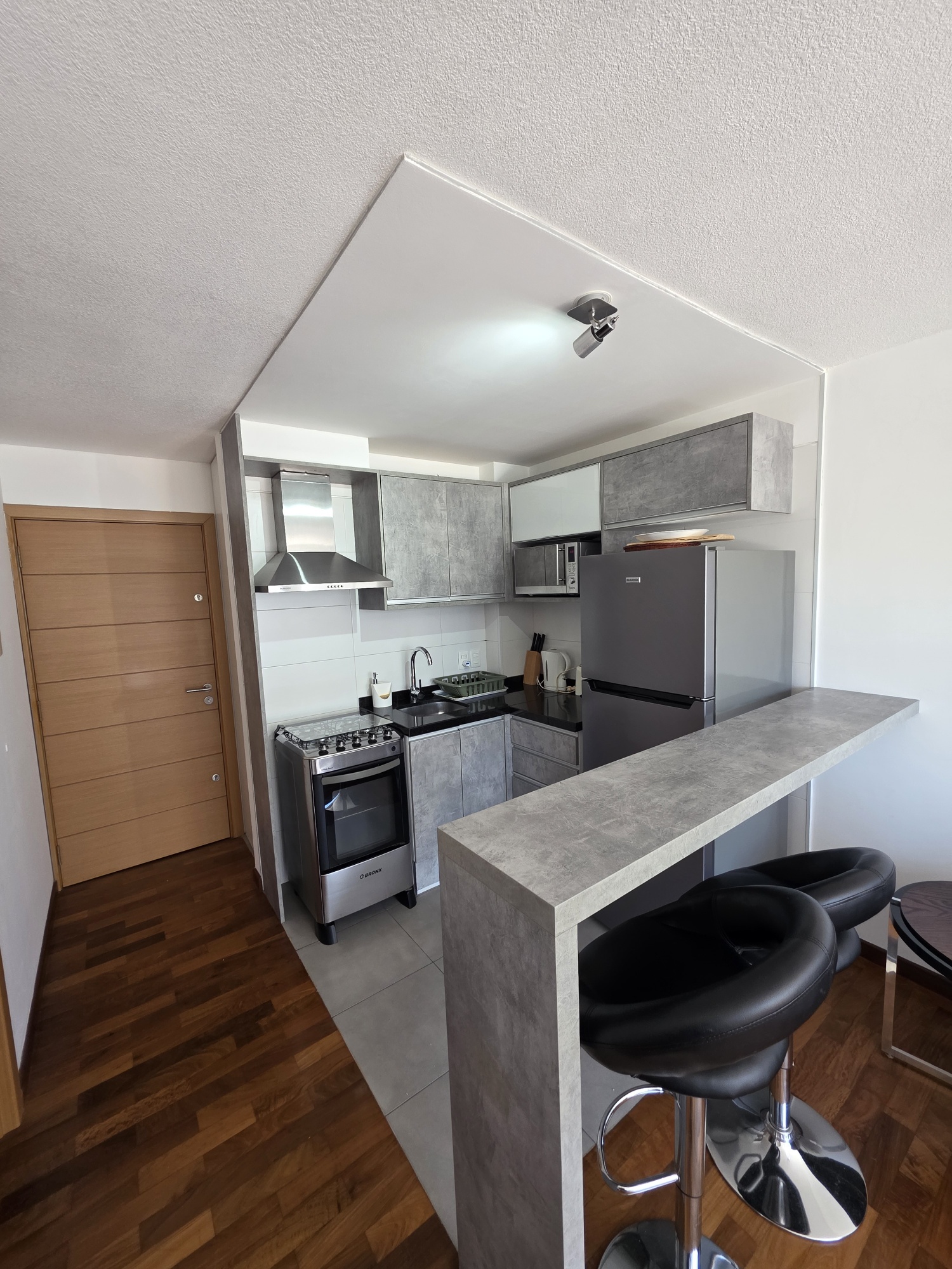 Piso alto. Living Comedor con salida a un balcón al frente. 1 Dormitorio grande, cocina definida. Terraza lavadero.Totalmente equipado estilo minimalista. Calefacción por Aire Acondicionado. Totalmente equipado. Pronto para entrar. No acepta mascotas.